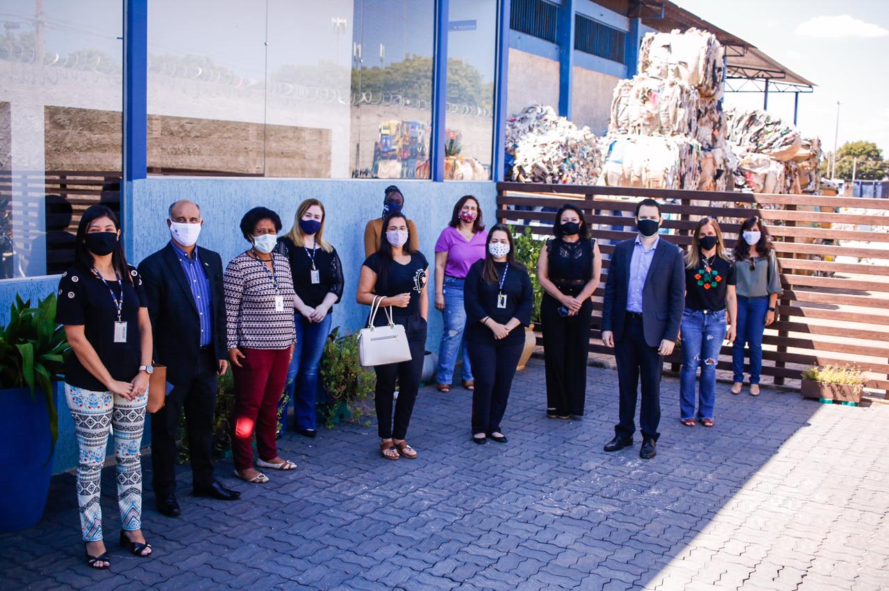O diretor regional do Sesc-DF, Moisés Nunes Brandão, a diretora do departamento de Programas Sociais da instituição, Nina Fontes, gestores e assistentes das áreas de Nutrição e Assistência Social realizaram uma visita técnica na manhã desta quinta-feira (22) na Cooperativa Recicle a Vida, localizada na região administrativa de Ceilândia.