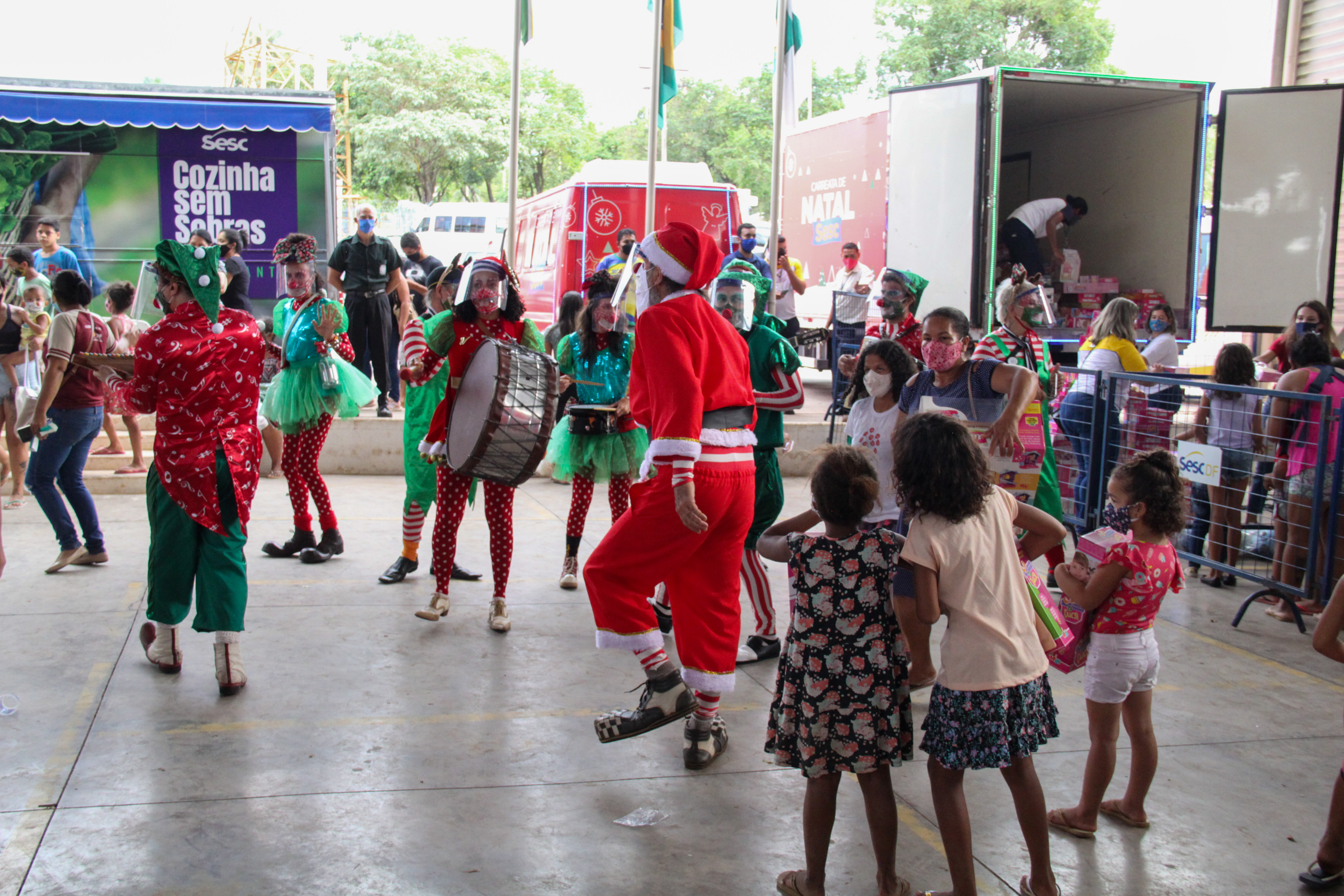 No período de 4 a 18 de dezembro, o Sistema Fecomércio-DF (Sesc, Senac, Instituto Fecomércio e Federação do Comércio) promoverá uma ação natalina em várias regiões administrativas do Distrito Federal. A iniciativa “Carreata de Natal Sistema Fecomércio-DF – Uma celebração à vida” levará apresentações artísticas e cantata de Natal com trupe de palhaços para promover alegria e diversão ao longo de 15 dias consecutivos. As atrações itinerantes percorrerão cidades como Itapoã, Guará, Taguatinga (Taguaparque), Estrutural, São Sebastião, Núcleo Bandeirante, Ceilândia, Varjão, Paranoá, Cruzeiro e Samambaia, entre outras. Também serão realizadas ações sociais coordenadas pelo programa Mesa Brasil Sesc, com distribuição de cestas básicas, brinquedos, itens de higiene e de limpeza para as instituições cadastradas no projeto. Já o Senac levará carretas com atividades de moda e beleza, além de serviços de corte de cabelo masculino e feminino, massagem, auriculoterapia, aferição de pressão e medição de glicemia.